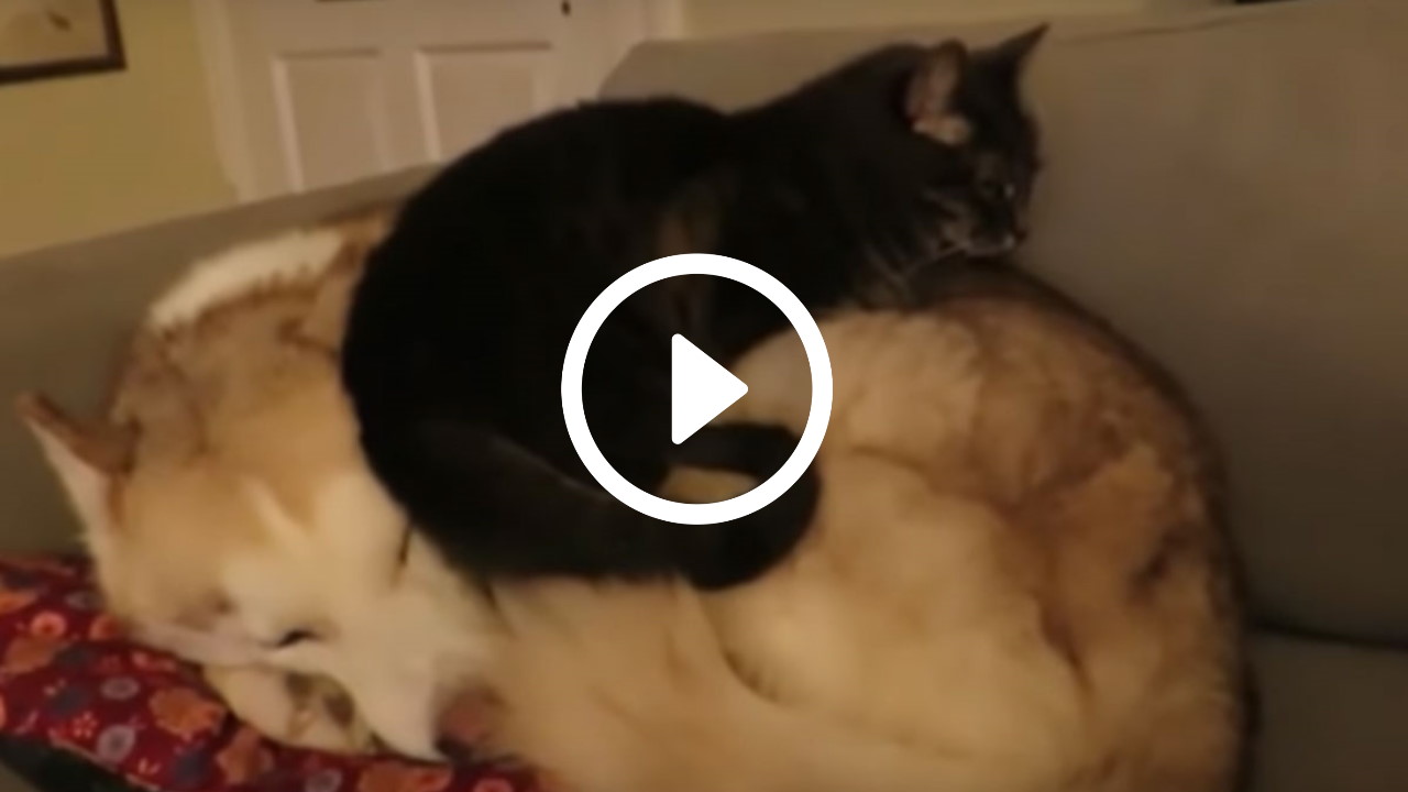 Kat besluit om op slapende hond te gaan zitten [video]
