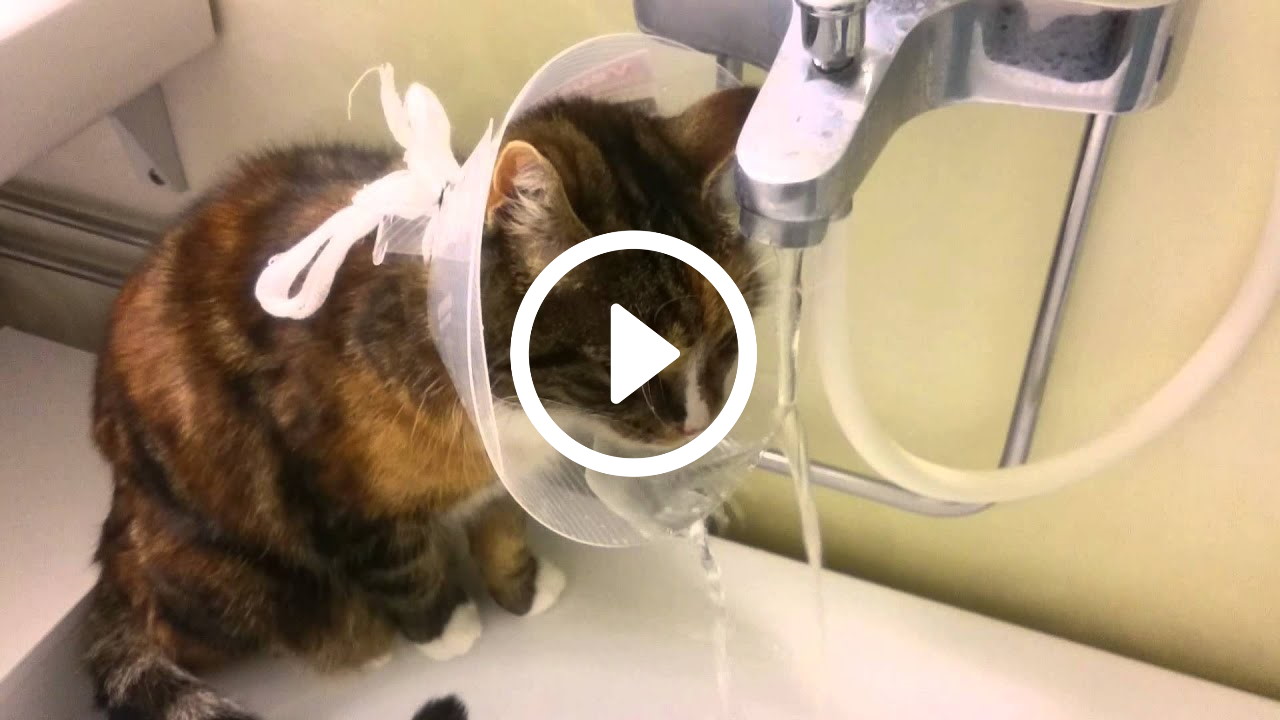 Slimme kat gebruikt plastic halsband als waterbak! [video]