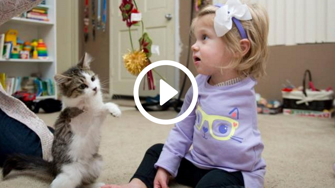 Kitten met drie pootjes geadopteerd door meisje met één arm [video]