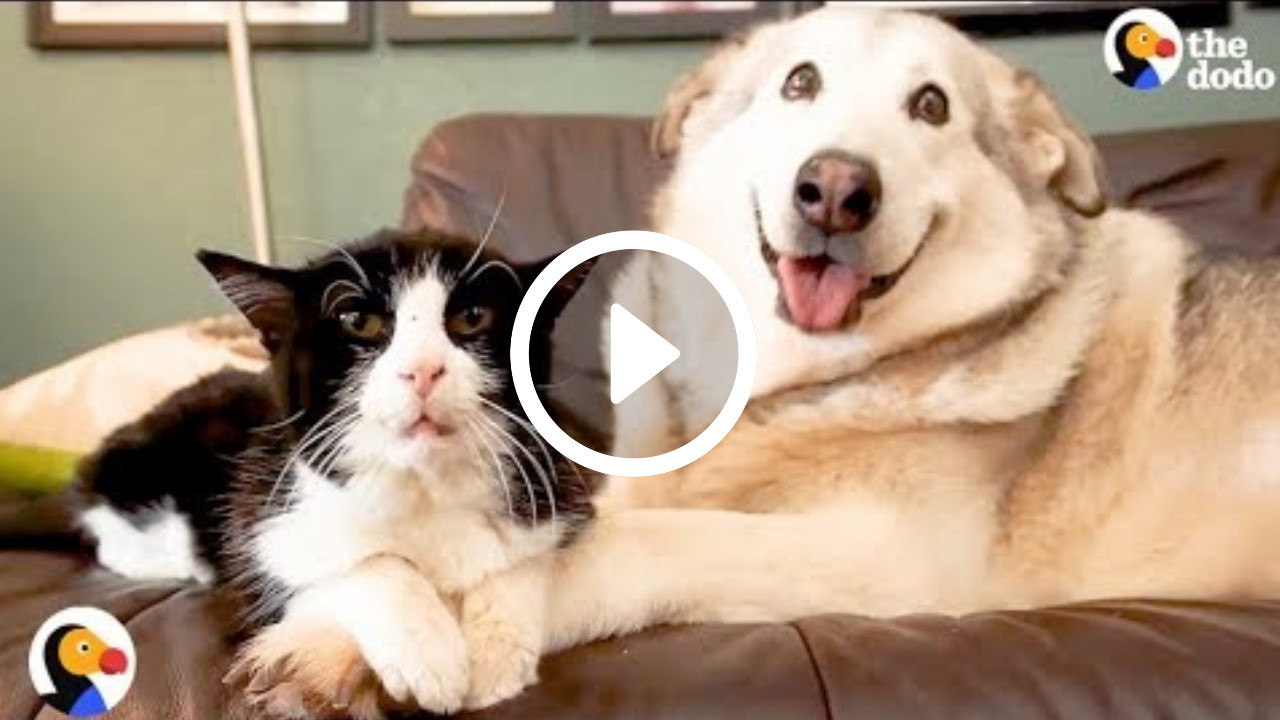 Hond verliest zijn kattenvriend, maar krijgt 4 pleegkittens om voor te zorgen [video]