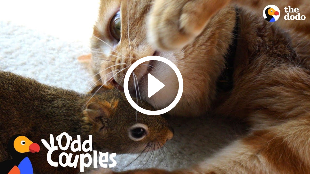 Kat is zo zachtaardig met zijn eekhoornbroer [video]