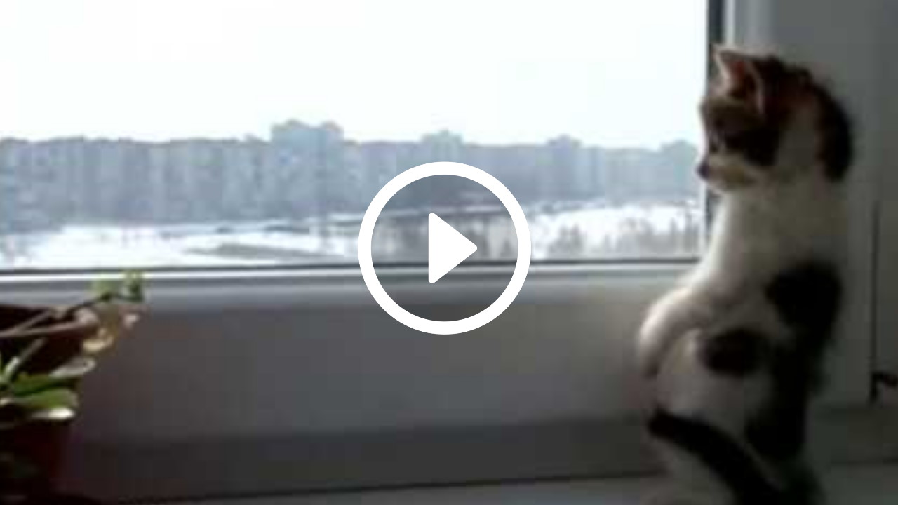 Schattige kitten kijkt uit het raam [video]