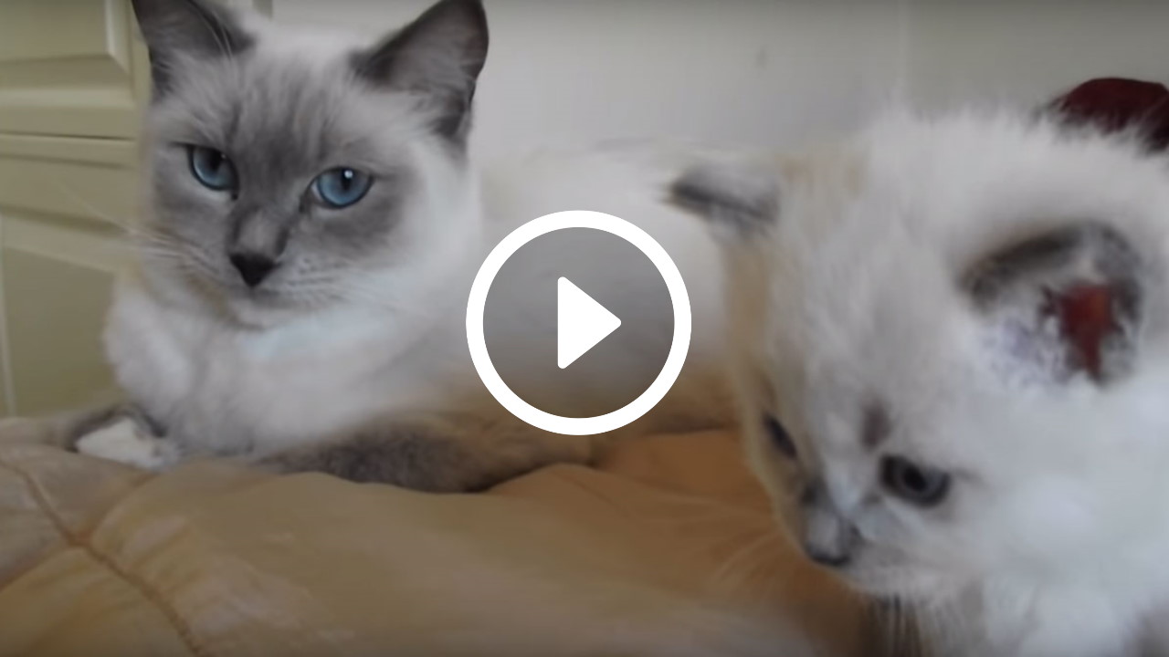 Dit is zo lief! Een schattige Ragdoll-mama-kat hangt op het bed met haar kitten en wanneer ze met elkaar beginnen […]